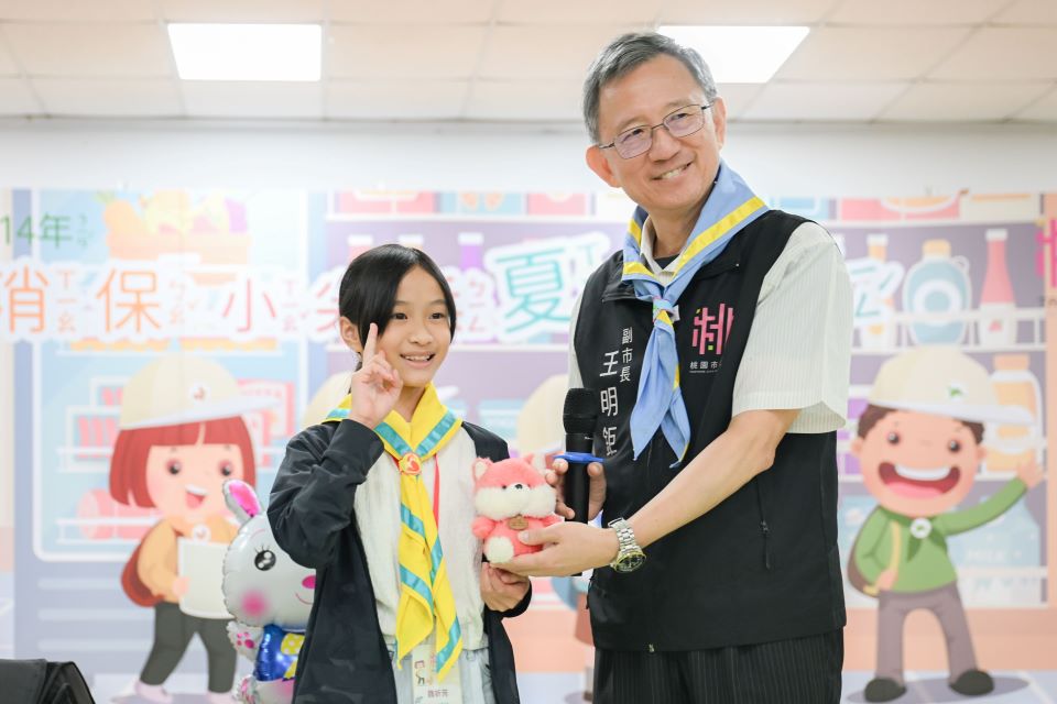 【記者彭慧婉/桃園報導】114年消保小尖兵夏令營(第二梯次),今(26)日上午在桃園區東門國小舉辦,桃園市副市長王明鉅前往頒發團體獎並表示,無論是在實體賣場或網路購物,孩童都應具備辨識資訊及保護自身權益的能力。透過夏令營課程,學員不僅能在課堂中學習消保知識,亦能實地參訪賣場,觀察與體驗消費環境,進一步培養正確消費觀念。市府將持續推動相關消保教育計畫,打造更安全透明的消費環境。市議員陳美梅、張碩芳、黃瓊慧、市府法務局長賴彌鼎、東門國民小學校長黃玉鳳、桃園區副區長邱創正等均一同出席活動。