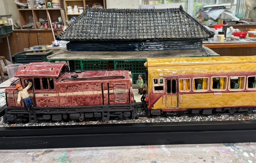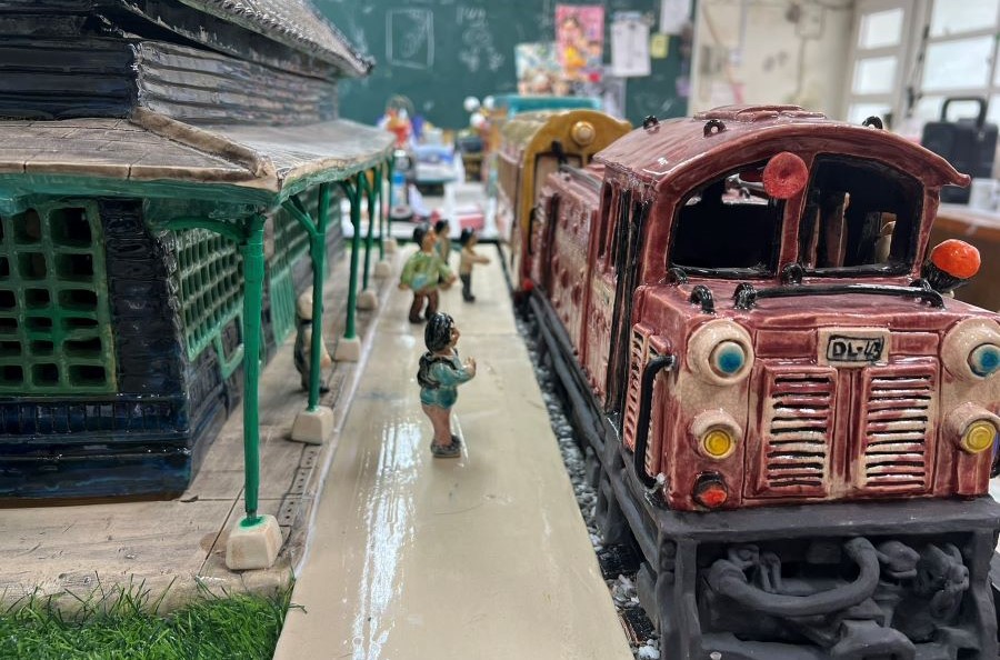 本次交趾陶創作以「舊情綿綿北門驛」為題,取材自車站的歷史場景與人文氛圍,融合傳統工藝與地方故事,用手工雕塑與色彩釉彩,還原車站昔日的溫度:月台旁,一列列紅色火車緩緩駛進,旅人肩背行囊、穿流在其中,亦有情侶在這留下倩影,這些場景,透過交趾陶的立體語言被凝固在時光之中。