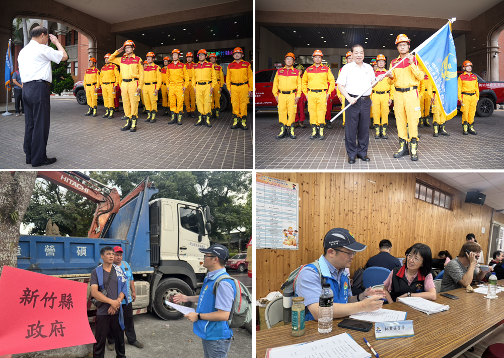 新竹縣政府工務處聯繫花蓮災害應變中心,得知目前需求為清理家園淤土、恢復道路通行,而以小怪手、山貓等機具較為適合街道清理,因此整備、盤點設備後,出動山貓、卡車、水車、挖土機及板車、工程車輛共計20輛,並派赴18名人員,於今天清晨出發前往花蓮,協助搶通道路工作。