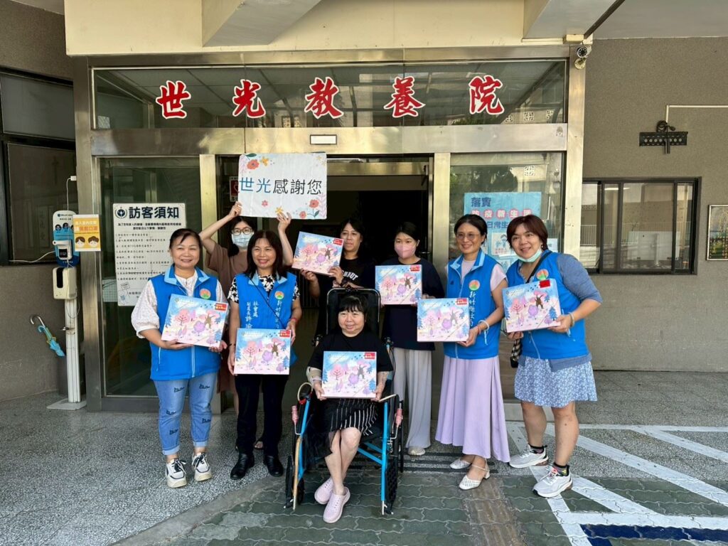 保順養護中心特別安排「中秋團圓大合唱」,住民與縣府團隊合唱〈月亮代表我的心〉,現場洋溢著佳節氣氛。社會處許瑜庭副處長也親切逐一關懷長者,表達縣府的祝福。隨後一行人前往世光教養院與德蘭兒童中心慰問,留下溫馨合影。