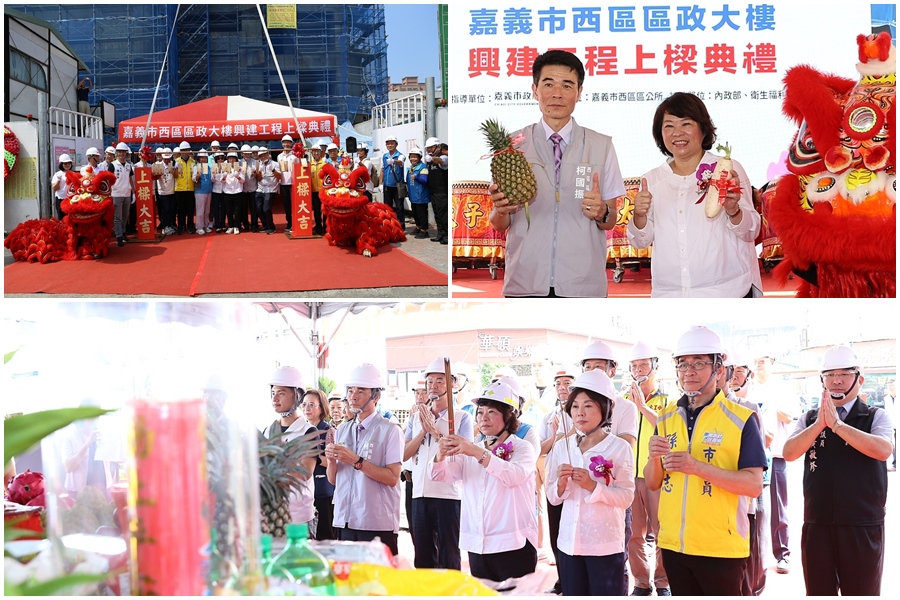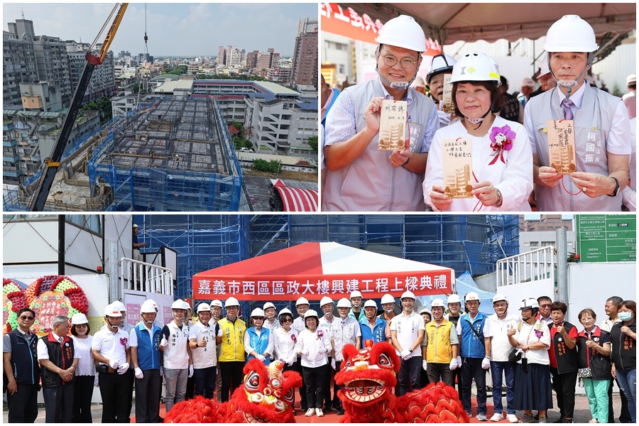 嘉義市政府推動西區區政大樓興建工程,歷經多年規劃與五度流標,於去年3月順利動工,今(3)日舉行上樑典禮。黃敏惠市長與貴賓共同見證,象徵西區行政服務升級與地方發展新里程碑。