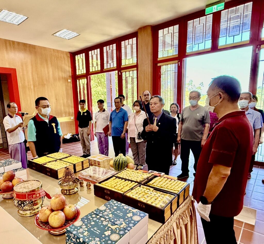 典禮由大家長陳玉麒擔任主祭官,輔導組組長王傳宗、堂長及榮民代表陪祭,並邀請德道慈善會理事長賴昭安、德道教育基金會院長蔡萬金及新北市托老互照志工協會理事長關崢等人共同與祭。陳家主任先在天公爐前開香,隨後帶領與會人員向歷年亡故榮民暨義士靈位上香、獻花、獻果與獻爵,虔誠行禮,表達最深敬意。德道團體並貼心準備親手製作的月餅與鳳梨酥作為供品,讓整場祭典更添真情與溫度。