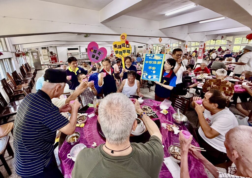托老互照與德道志工、榮家員工及住民們一邊享用美味佳餚,一邊接力演唱熟悉的老歌,餐會現場彷彿一座大型KTV,歌聲四溢、歡樂不絕,洋溢著濃濃人情味,也讓榮家長輩們在月圓人團圓的節日裡,感受到家的溫暖與節慶的幸福氣息。