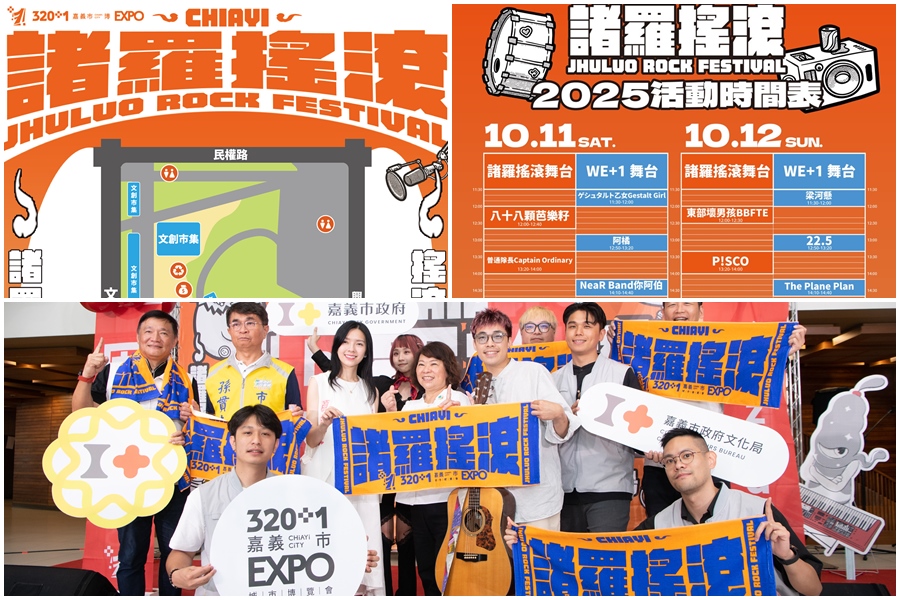 連假最強音樂盛典「2025諸羅搖滾音樂祭」將於10月11日、12日登場,今年首度移師嘉義市中央廣場舉辦,雙舞台、兩日28組卡司輪番開唱,從中午嗨到夜間9點半,全程免費入場,勢掀國慶連假南臺灣最強音浪。市長黃敏惠表示,「諸羅搖滾」已成為嘉義最具代表性的品牌活動之一,展現城市「文化向下扎根、向外連結」的精神,不僅是音樂祭,更是嘉義文化力的象徵。她熱情邀請全國樂迷「回嘉聽音樂」,一起感受嘉義的音樂魂。