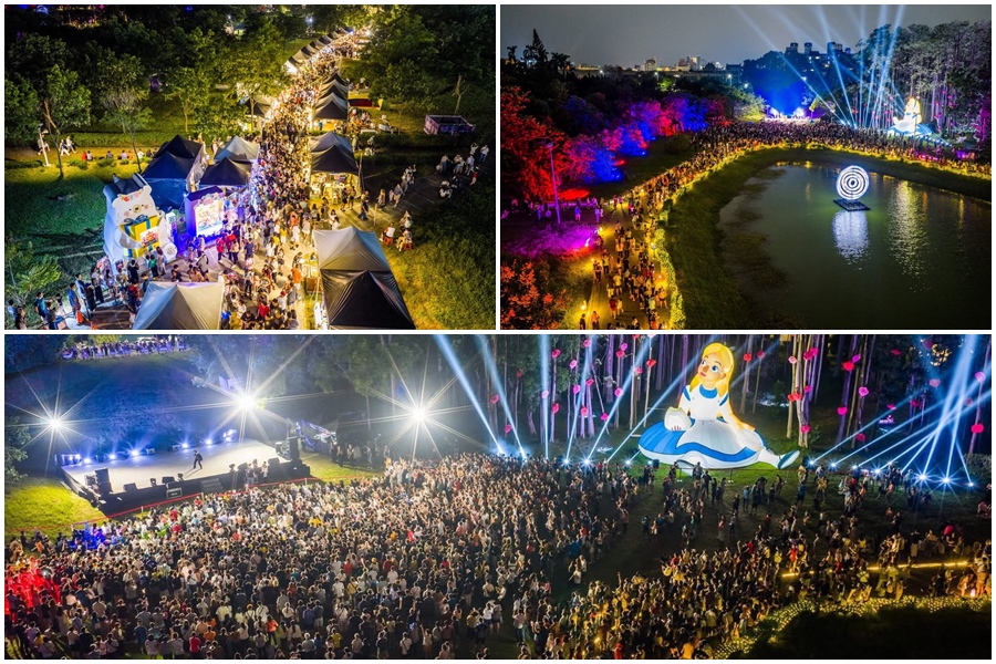 今年展覽以迪士尼經典《愛麗絲夢遊仙境》為主題,白天可賞巨型愛麗絲氣偶與奇幻花園的細膩造景,夜晚燈光亮起後,北香湖化身光影樂園,從30米沉浸光環隧道、9米高主題裝置到湖面閃耀的「光月疊影」,皆吸引遊客駐足拍照。