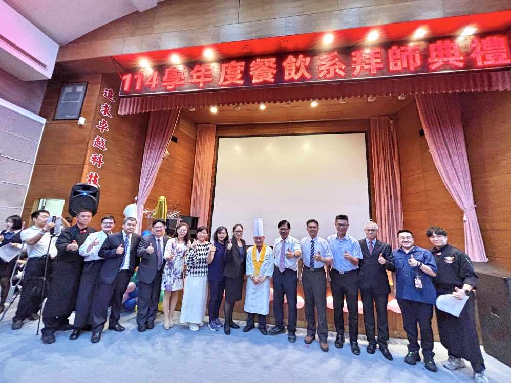 敏實科技大學餐飲管理系今(10/15)日於定一樓國際會議廳,隆重舉辦年度的「拜師禮」活動,全體餐飲系師生、越南南向班、國際專班、日本常磐大學及樂齡大學的同學共同參與,同時並特別邀請享譽國際的國宴主廚阿基師(鄭衍基)擔任嘉賓,突顯敏實科大校方非常重視這場拜師禮「達人薪傳、術德兼修」意義,而這場尊師重道的盛會,不僅傳承廚藝精髓,更注入職業精神與人文關懷,激勵學子在餐飲界砥礪前行。