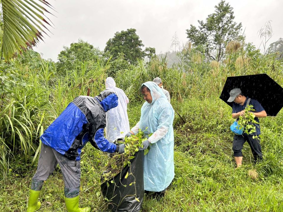 【記者彭慧婉/新竹報導】小花蔓澤蘭被稱為「綠癌」,列為臺灣十大外來入侵種之一,因其極強的攀爬力與繁殖能力,常迅速覆蓋原生植物,造成生態失衡。雖然烏來地區鮮少有小花蔓澤蘭出現,但相鄰的新店地區已逐步受到小花蔓澤蘭侵害,若不及早防治將持續往烏來山區蔓延,對當地珍貴的原始林相造成無可挽回的損害。為防治小花蔓澤蘭對生態的破壞,林業及自然保育署新竹分署烏來工作站今(21)日與直潭里辦公室攜手合作,於新北市新店區直潭社區共同舉辦除蔓活動。此次活動號召社區居民共40人熱情參與,大家齊心協力,共清除近40公斤的小花蔓澤蘭,展現社區對保護自然環境的決心。