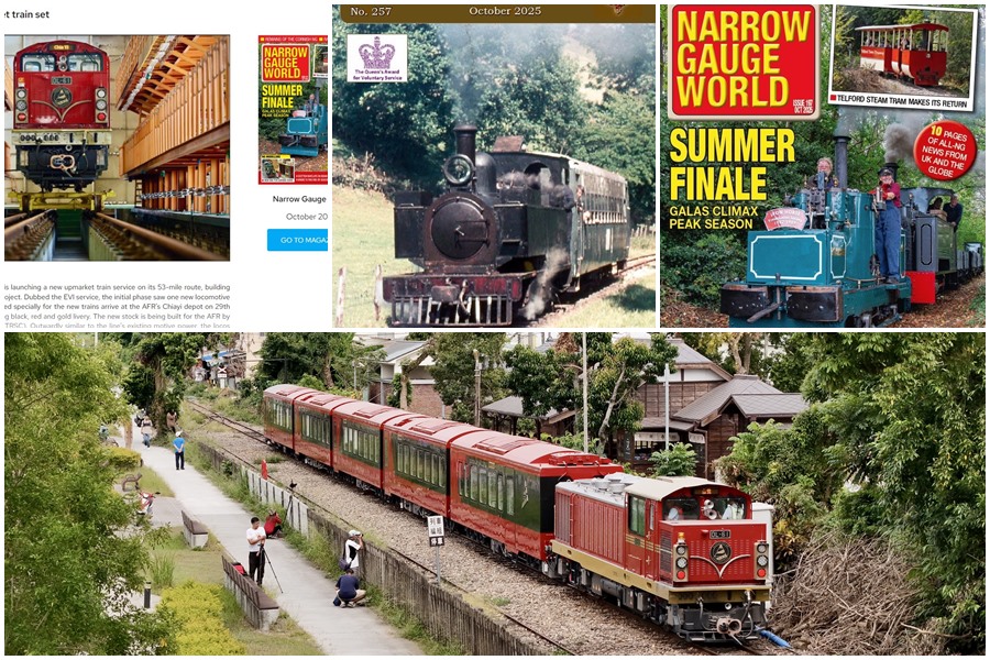 特別是《Narrow Gauge World》自 1996 年創刊,是英國及歐洲最具影響力的窄軌鐵道刊物之一,長期報導全球鐵道文化、車輛設計與保存活化,被視為國際窄軌鐵道的重要指標。本期以全頁篇幅介紹阿里山林鐵近年全線升級成果,包括「森里號」由台灣車輛公司打造,共五輛柴油機車、二十六輛車廂,具備雙駕駛控制、自動門、乘客資訊顯示與優化避震等新世代技術。報導特別指出,「EVI」源自鄒族語「森林」,象徵林業文化、觀光旅遊與自然生態共存的核心精神。