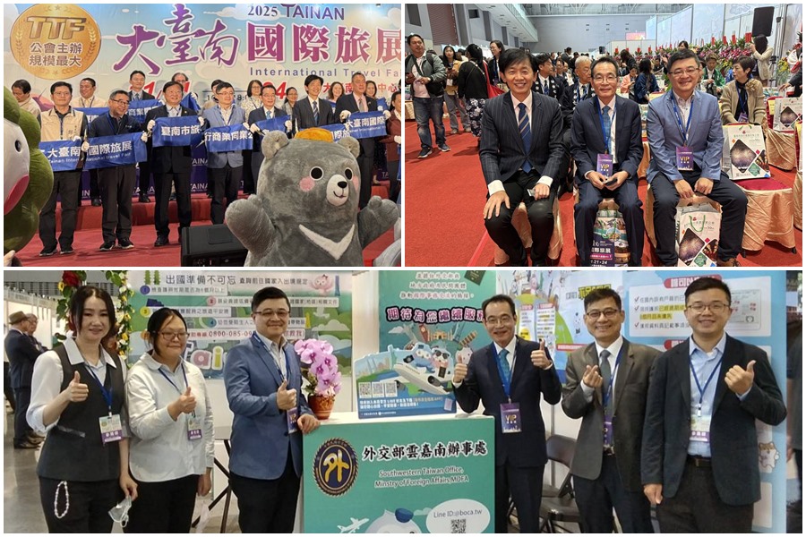 「2025 年大臺南國際旅展」11 月 21 日於大臺南會展中心盛大開幕,吸引政商學界超過 200 位貴賓出席。外交部領事事務局局長鄭正勇、雲嘉南辦事處處長曾榮傑受邀參與開幕典禮,與總統府國策顧問康銀壽、臺南市副市長葉澤山及國內外旅遊單位代表共同啟動年度盛會。