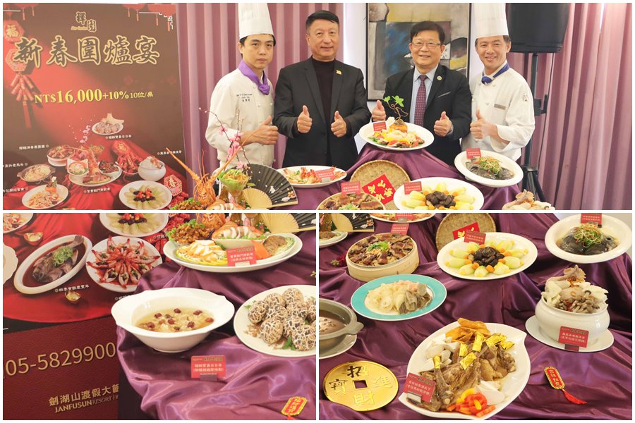 飯店禪園中餐廳於除夕夜推出「海陸豐饌圍爐宴」,嚴選龍虎斑、戰斧豬等頂級食材,設計十二道應景年菜,包括象徵年年有餘的蔥油龍虎斑、金銀蒜蒸海大蝦、上湯一品海皇羹、蟲草花燉花膠雞及杏菇黑椒戰斧豬等,兼顧寓意與口感,每桌售價1萬6,000元另加一成服務費。劍湖山世界總經理曾慶欑表示,飯店圍爐兼具便利與氣派,讓闔家共享星級年菜與團圓時光。