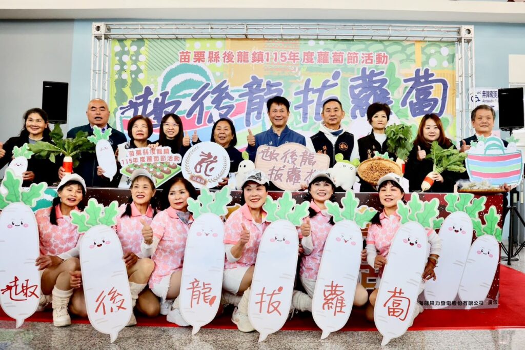 【記者鍾文和/苗栗報導】苗栗縣後龍鎮公所將舉辦「115年度蘿蔔節活動」,於1月21日在後龍鎮公所大廳辦理活動記者會,為系列活動正式揭開序幕。記者會開場特別邀請大庄排舞班帶來精彩演出,展現社區活力與在地特色,同時宣告1月26日開放報名共700組,邀請大家1月31日一起來~趣後龍.拔蘿蔔、看表演、嚐美食、DIY,體驗農家樂。