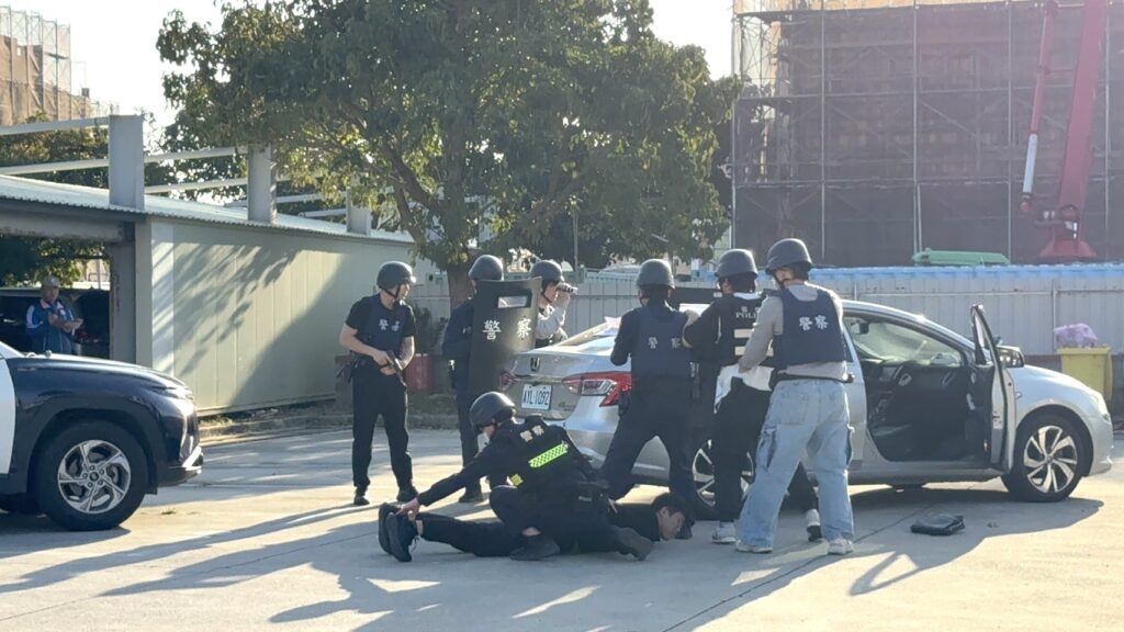 頭份警分局舉行防搶演練 警網迅速圍捕 實兵實境過程逼真
