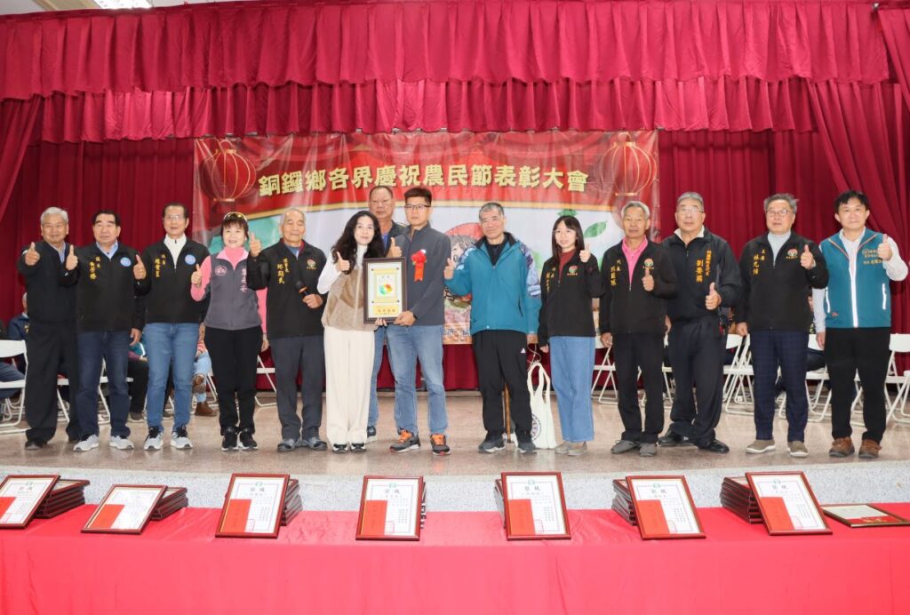 【記者鍾文和/苗栗報導】銅鑼鄉農會4日上午在銅鑼灣會館舉行115年度農民節表彰大會,表揚50多位優秀農友及農業推廣有功人員,縣長夫人陳美琦感謝農會配合推動各項農業政策,輔導農友參與杭菊、東方美人茶、仙草等栽種及產銷,並感謝優秀農友們這一年來的付出,將苗栗優質農產品行銷出去。