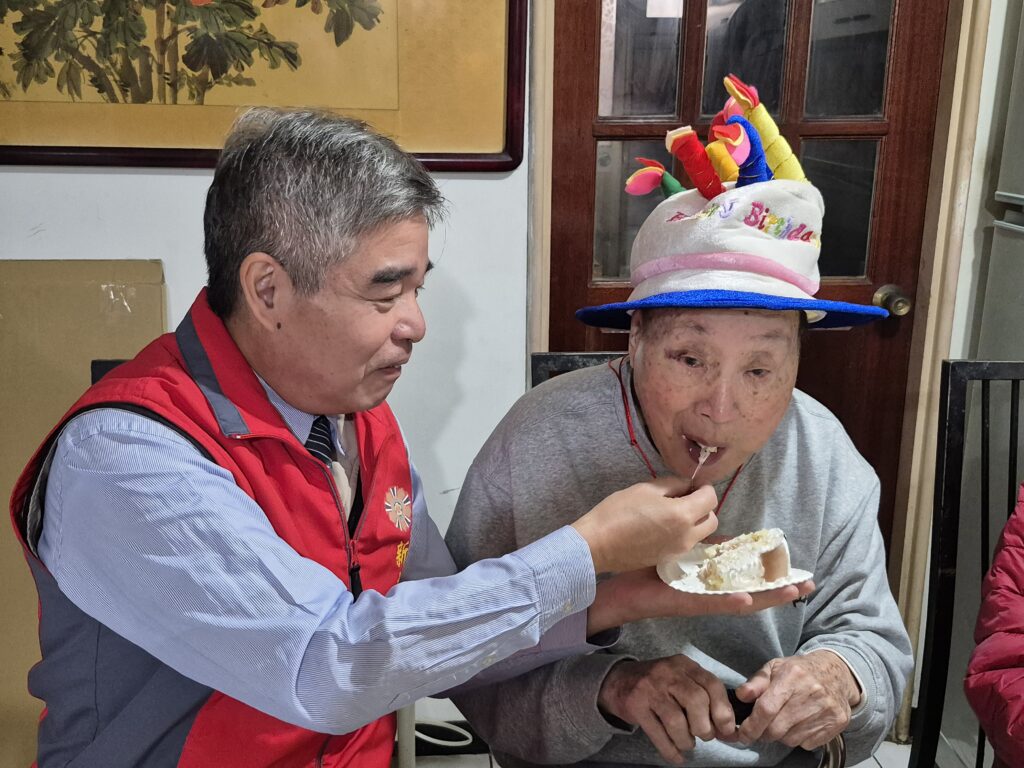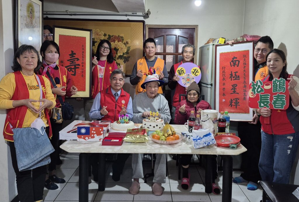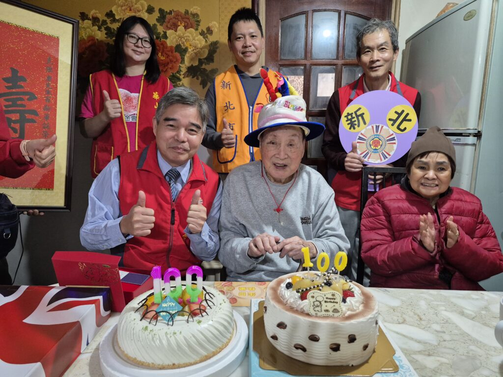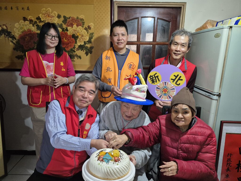 新北榮服處視老如親 登門向百歲人瑞祝壽切蛋糕送賀禮