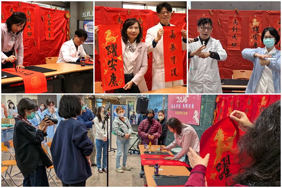 迎接農曆新年,嘉義基督教醫院10日舉辦「馬躍安康 嘉基守護 新春衛教送春聯」活動,結合書畫藝術與健康衛教,邀請到台師大美術系博士也是第六屆桃城美展水墨玉山獎得主的黃寶賢老師現場揮毫贈民眾,讓來走進醫院,在年節氛圍中祈福迎春做好健康準備。嘉基院長陳煒表示,期盼透過新春衛教與文化活動,讓民眾帶回的不只是春聯,更是平安與健康的祝福。