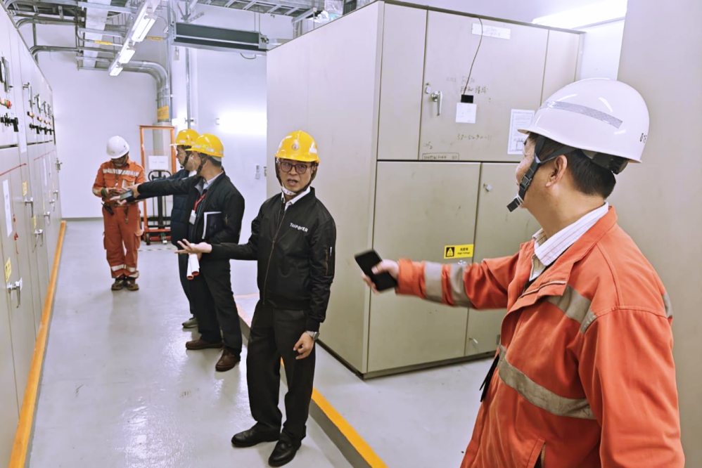 ▲台電新竹區營業處於春節前夕成立「專案巡檢小組」,全面啟動「加強供電設備巡檢計畫」,確保115年農曆春節期間供電穩定。台電新竹區處陳鈞泰處長向高鐵公司工程師詢問並關心設備狀況。(圖/台電新竹區處提供)