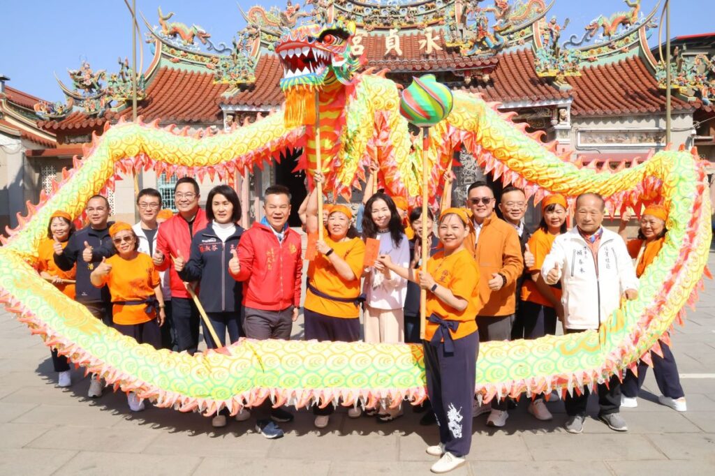 圖說:苗栗市公所於頭份永貞宮舉行「2026苗栗火旁龍」系列活動【龍馬奔放.苗栗火旁起來】記者會,由市長余文忠、永貞宮主委張淑芬共同主持,縣長夫人陳美琦蒞臨現場共襄盛舉,為2026年新春暖身造勢。(圖/苗栗市公所提供)