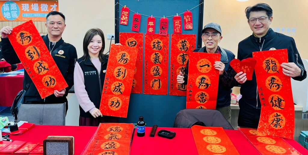 苗栗就業中心張潔如主任表示,此次徵才活動吸引多家在地廠商及知名企業前往參與,計有京元電子、聯嘉光電、信邦電子等15家廠商,釋出逾560個優質職缺,吸引待業中或有轉職意願的民眾,積極前來面試;配合農曆春節即將到來,此次特別邀請後龍鎮榮民陳昭卿老師於現場揮毫寫春聯、贈春聯。