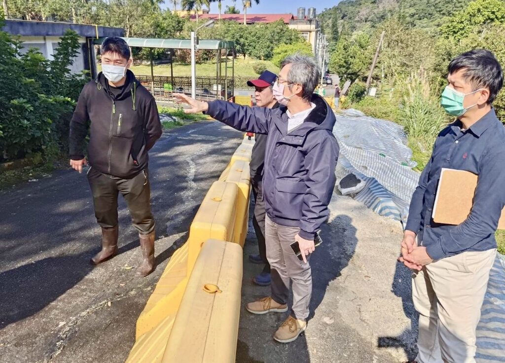 ▲林副主任(右二)巡視邊坡坍方道路施工及安全維護狀況。(圖/台北榮家提供)