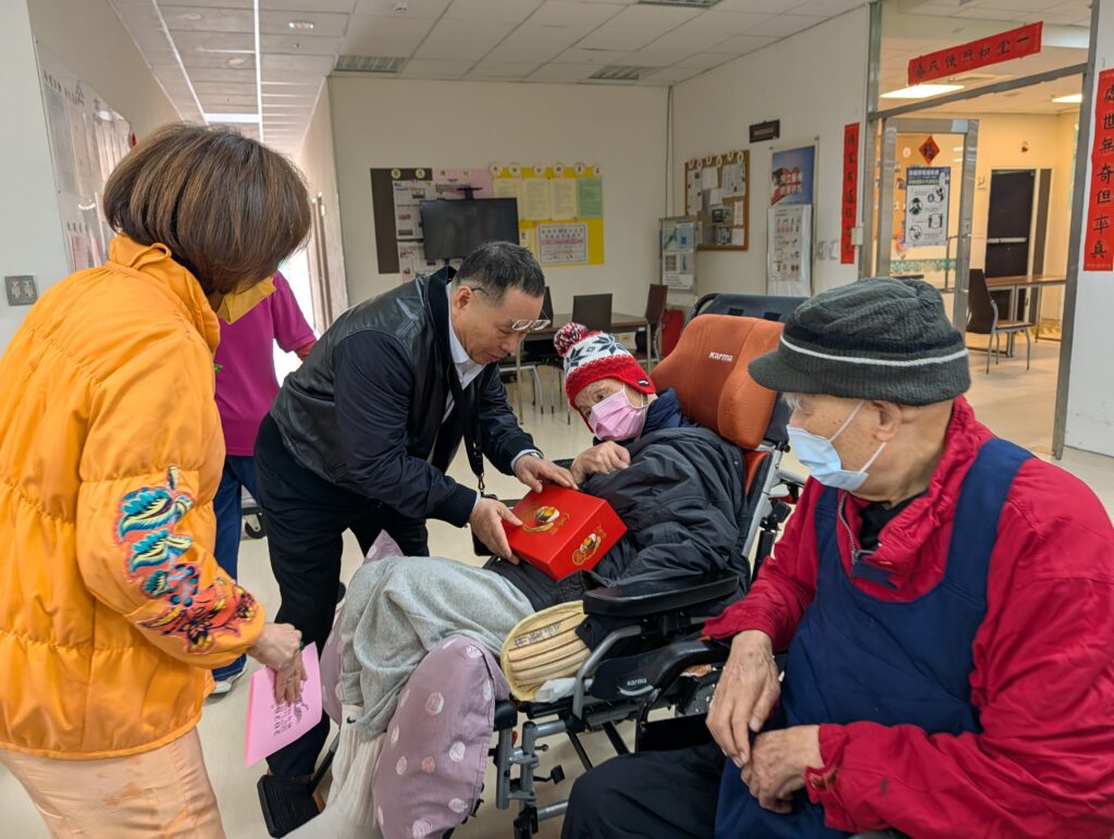 ▲彭桂港理事長一一送上春節禮盒給長輩。(圖/板橋榮家提供)