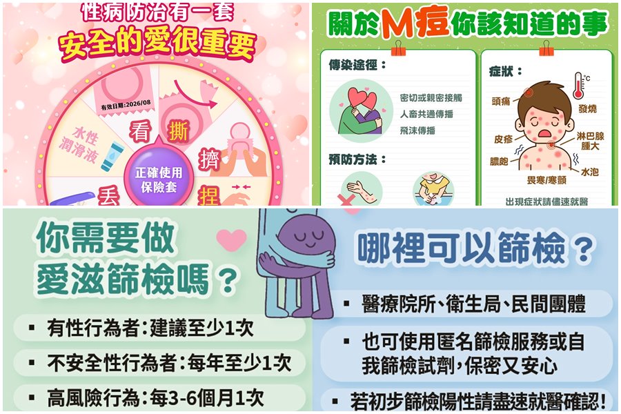 疾病管制科長盧敏琪指出,親密行為應全程正確使用保險套及水性潤滑劑,並定期篩檢。曾有性行為者建議至少篩檢1次;有不安全性行為者每年至少1次;若有多重性伴侶、共用針具或曾感染性病等高風險行為,建議每3至6個月篩檢1次。