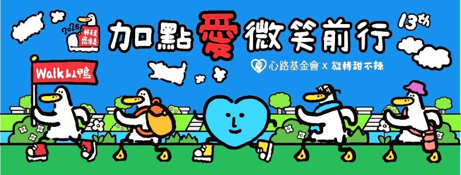 心路健走活動每年推出的聯名系列物資,向來是吸引民眾報名收藏的一大亮點。即日起開始報名,凡報名健走者即可獲得由插畫家「旋轉甜不辣」以創作角色「日子還是要過鴨」為心路設計的紀念獎牌、運動小包、壓克力吊飾、隔熱手拿杯,另有限量200組即可拍。活動當天,健走闖關路線沿途也設置多處「鴨鴨」打卡立牌,邀請民眾邊走邊拍,留下溫暖回憶。當天拍照、打卡、上傳社群完成任務,還可現場兌換由悠遊卡公司贊助的《心路⨯旋轉甜不辣》限量公益聯名悠遊卡。