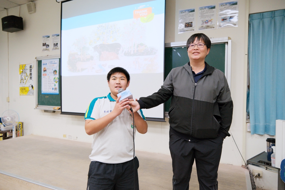 農業處蔡耿宇副處長親自出席活動,他感性表示,農業不只是勞作,更是對土地的承諾。透過標竿青農的經驗分享,縣府希望讓在地的孩子們看見:留在家鄉工作,不代表失去競爭力,反而能利用在地資源,結合智慧科技與品牌策略,創造出屬於自己的專業舞台。蔡副處長強調,縣府的角色是搭建橋樑,透過標竿青農的實戰經驗,讓學子在校期間就能建立具備國際視野的農業思維,將家鄉這片土地視為創業與實踐自我價值的舞台。