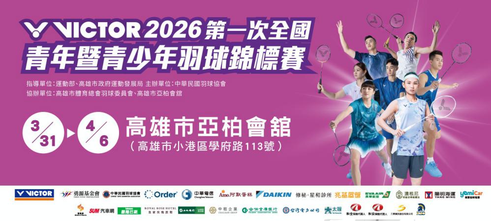 為提昇青少年羽球技術水準並與國際賽制接軌,及選拔2026亞、世青羽球錦標賽等各項青少年國手選拔依據,2026第一次全國青年暨青少年羽球分齡排名賽,自3月31日至4月6日在高雄市亞柏會館舉行。中華羽協表示,這場是國內青少年選手生涯中最高級別的賽事,對於所有羽球小將們極其重要,因此全台青少年羽球小將們都已摩拳擦掌,為了世青亞青國手之路而戰!