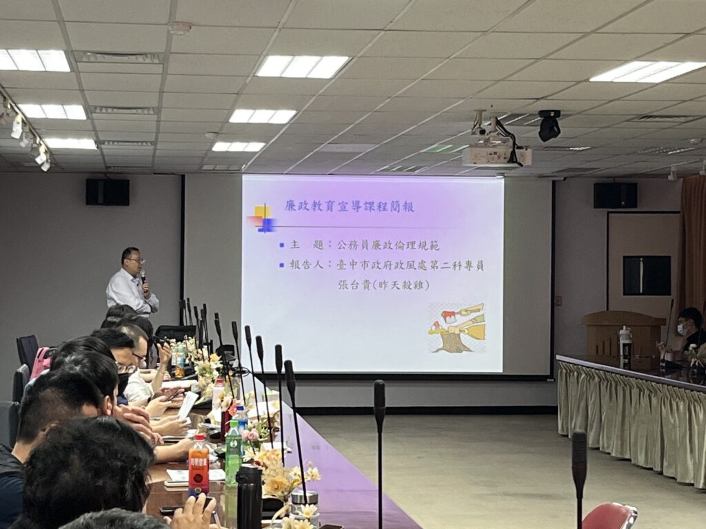 下午場次則由臺中市政府政風處張台貴專員講授「公務員廉政倫理規範」及「公職人員利益衝突迴避法」等陽光法案,除就法規重點進行說明外,並透過實務案例與情境式提問,引導與會同仁思考日常業務中可能面臨之廉政風險,輔以有獎徵答方式強化學習效果,現場互動熱絡,整體成效良好,充分展現宣導與實務結合之效益。