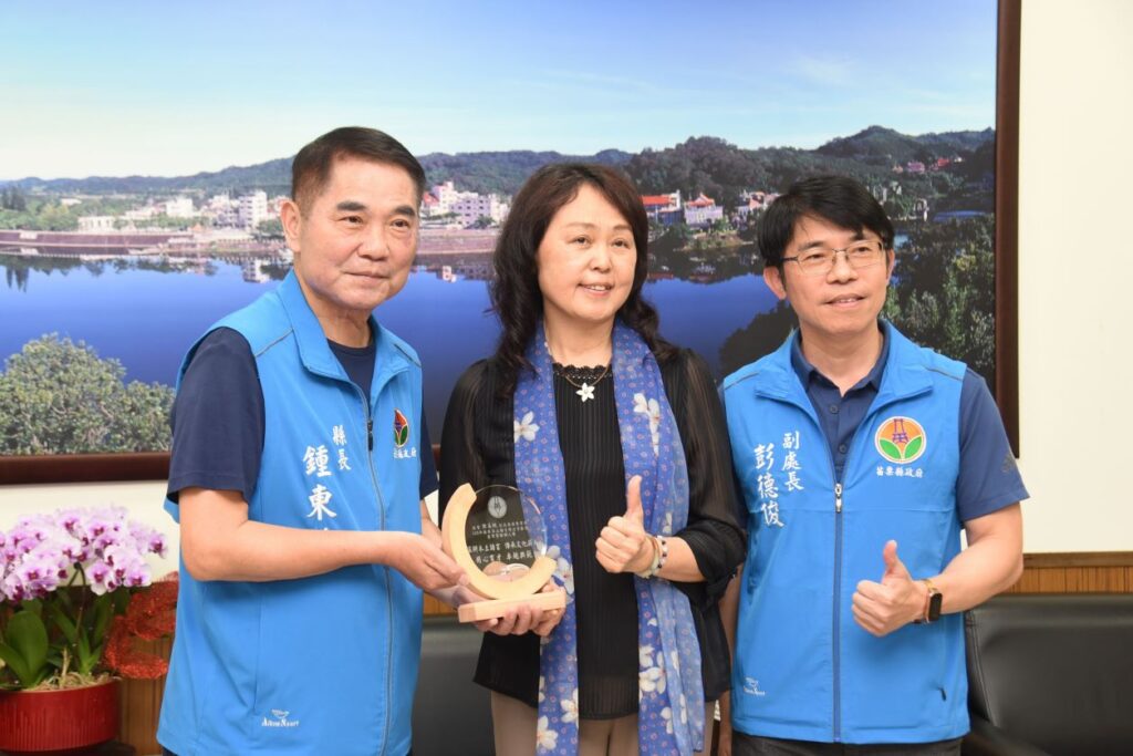 苗栗杏壇雙喜臨門,縣長鍾東錦16日接見兩位苗栗之光,頒發「用心育才、卓越典範」獎牌給大同國小校長謝美桃,肯定她深耕本土語言、傳承文化薪火的奉獻;另頒贈獎狀及獎勵金2000元給建國國中八年級學生朱映潼,讚許她多才多藝展現多元能力與公共關懷。