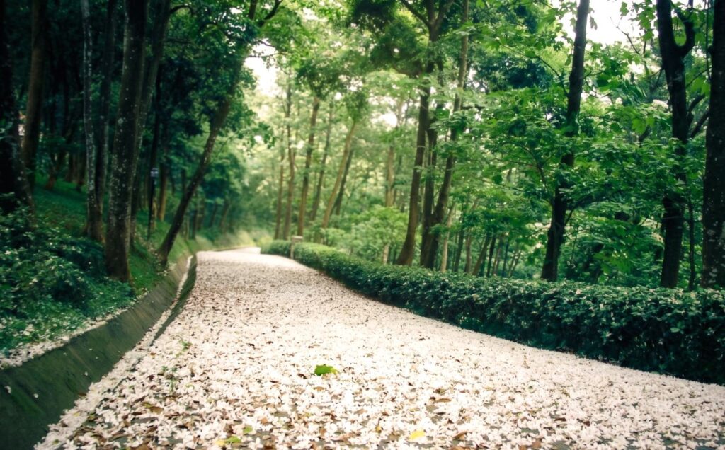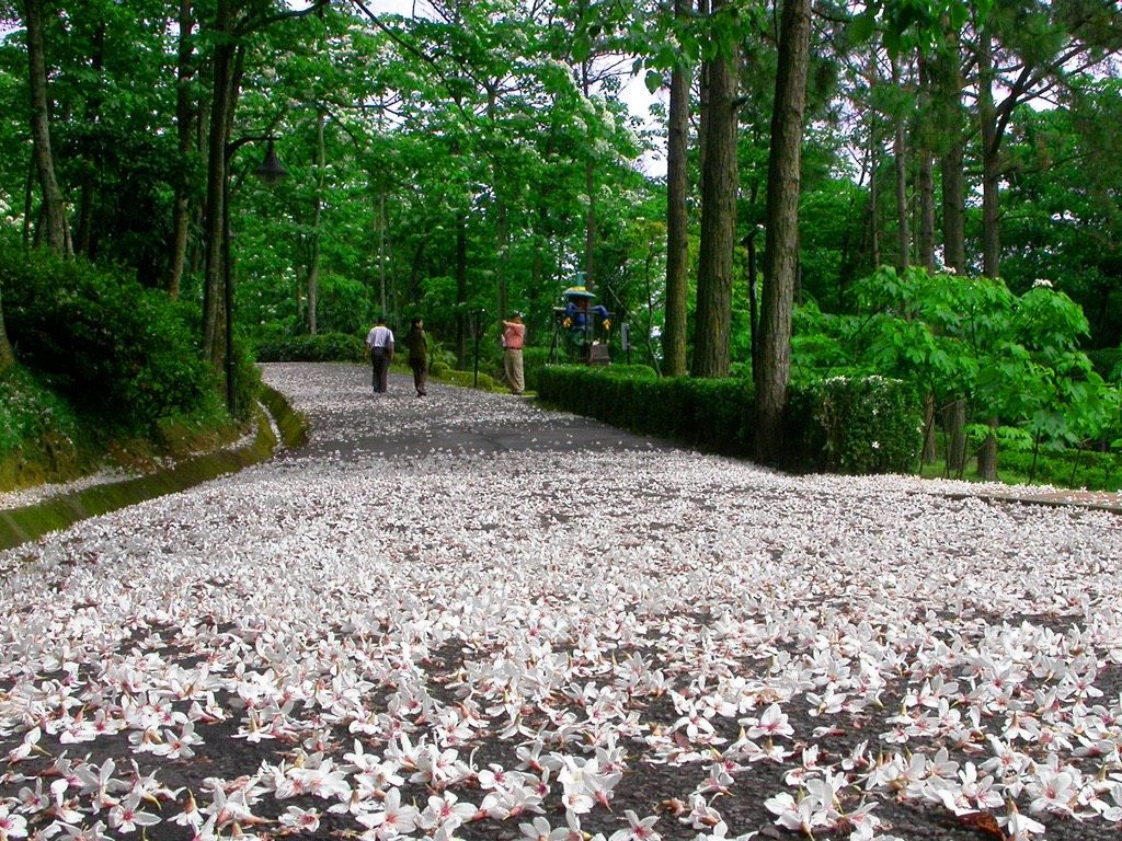 圖說:西湖渡假村一條幽靜的小徑鋪滿了厚實如白雪般的桐花,彷彿大自然精心編織的白色地毯,這張被譽為「全台最強既視感」的桐花神照。(圖/西湖渡假村提供)