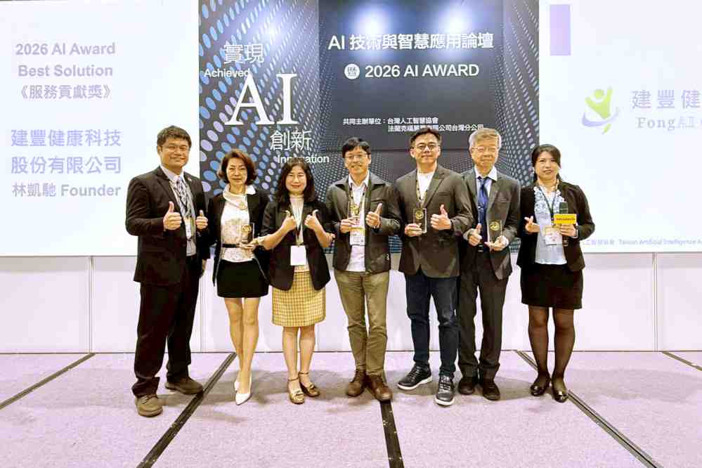 台灣人工智慧協會(TAIA)正式揭曉「AI Award 2026 Best Solution」獲獎名單。建豐健康科技(FongAI) 以「AI Safety Compliance」方案在激烈競爭中脫穎而出,榮獲「服務貢獻獎 」。該技術不僅在台灣百處據點落地,更成功輸出新加坡與日本,展現台灣在高齡科技(Age-tech)與 AI 預防醫學領域的國際化競爭力 。