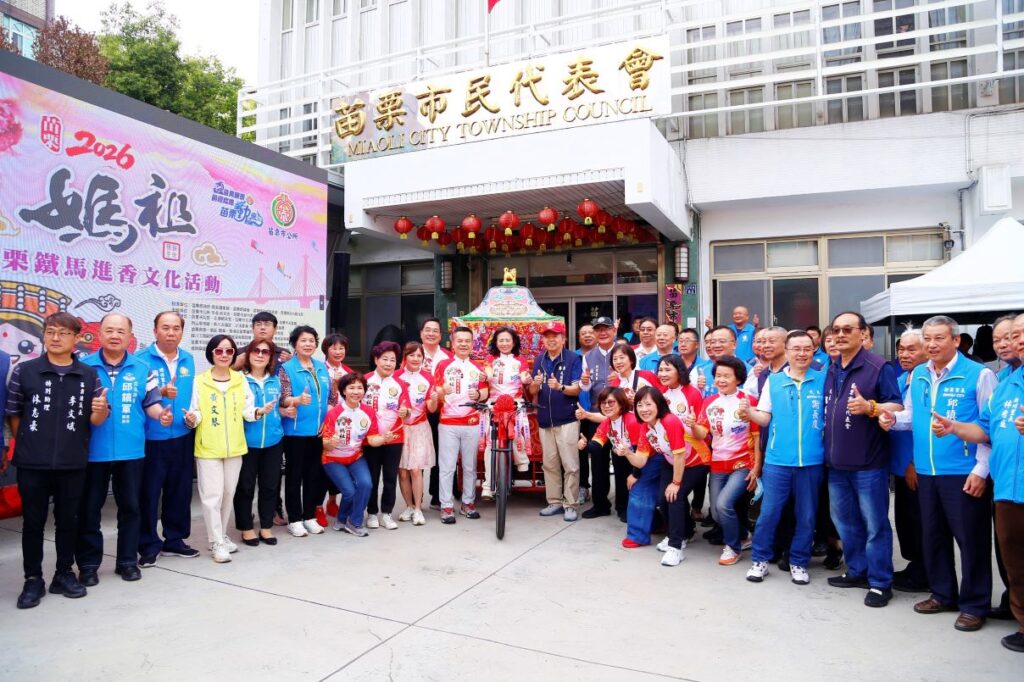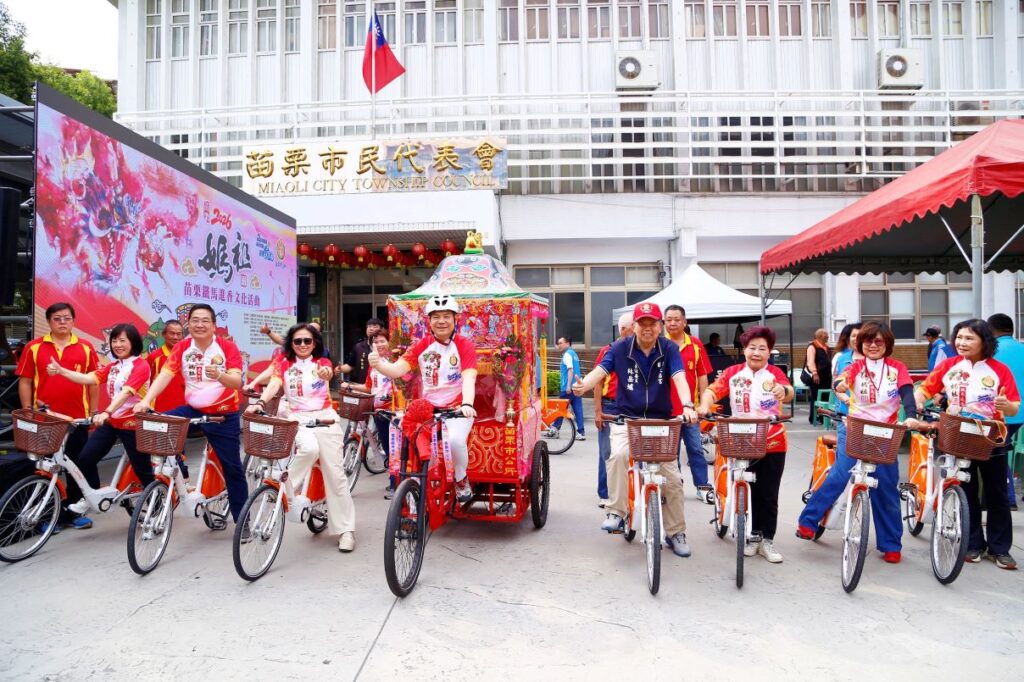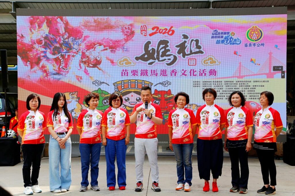 27日在公所前好客廣場舉辦記者會,在苗栗縣副縣長邱俐俐、苗栗市長余文忠、苗栗市民代表會主席陳仁杰以及天后宮主委林岳爐暨全體理監事與北港朝天宮副董事長蘇健榮等來賓,邀請全台車友與民眾一同見證鐵馬與信仰交織的動人場景。