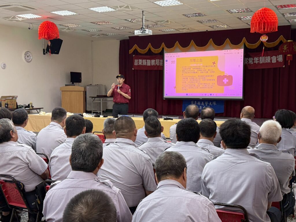 【記者彭維權/苗栗報導】為精進義警人員專業技能及協勤效能,並提升面對災害與各類突發事件之應變與自救能力,苗栗警察分局於4月27日下午1時,假苗栗市嘉新里社區活動中心辦理「115年義警中隊常年訓練」,計有義警人員235人參加,現場氣氛熱烈。